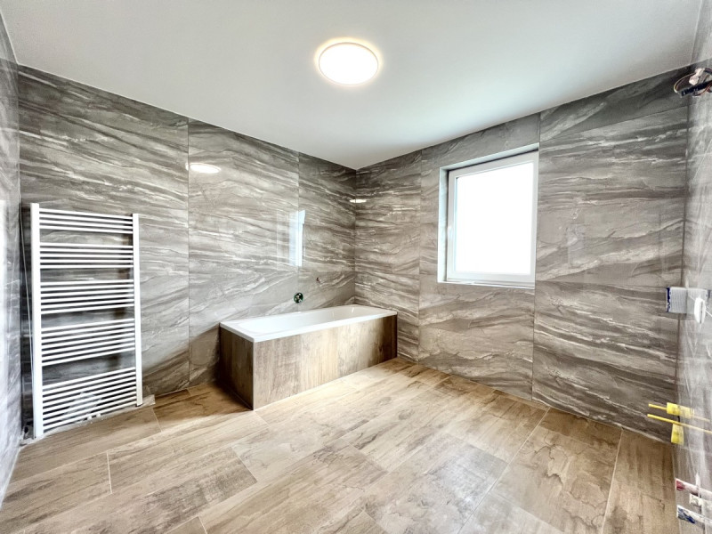 Das Erdgeschoss besticht durch seine geschickte Aufteilung, inklusive einem Vorraum, einem Technikraum, einem Badezimmer sowie einem großzügigen Wohn- und Essbereich. Ein geräumiges Schlafzimmer und eine moderne Küche komplettieren diesen Bereich.